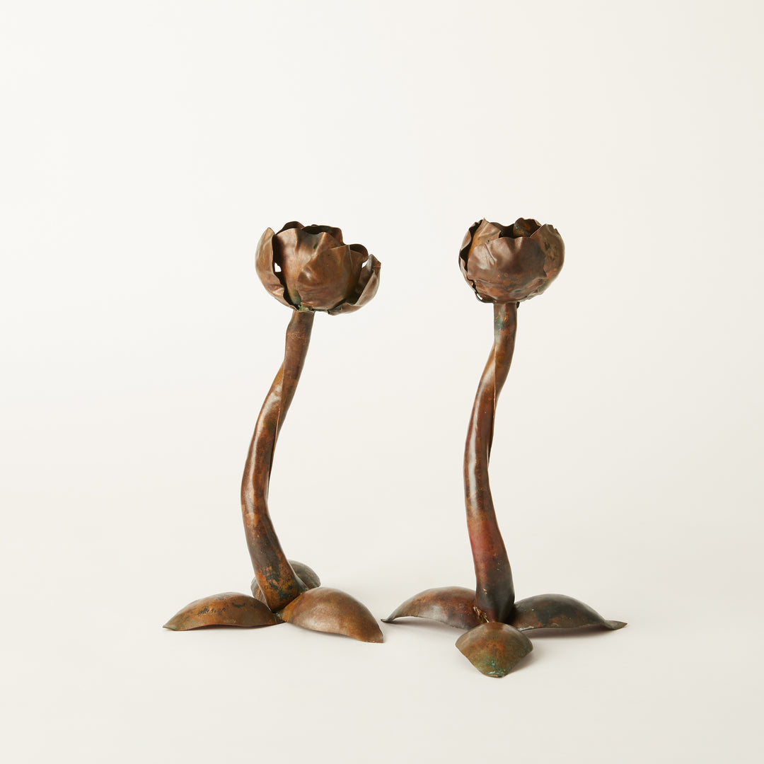 Copper Arts and Crafts Floral Candlesticks