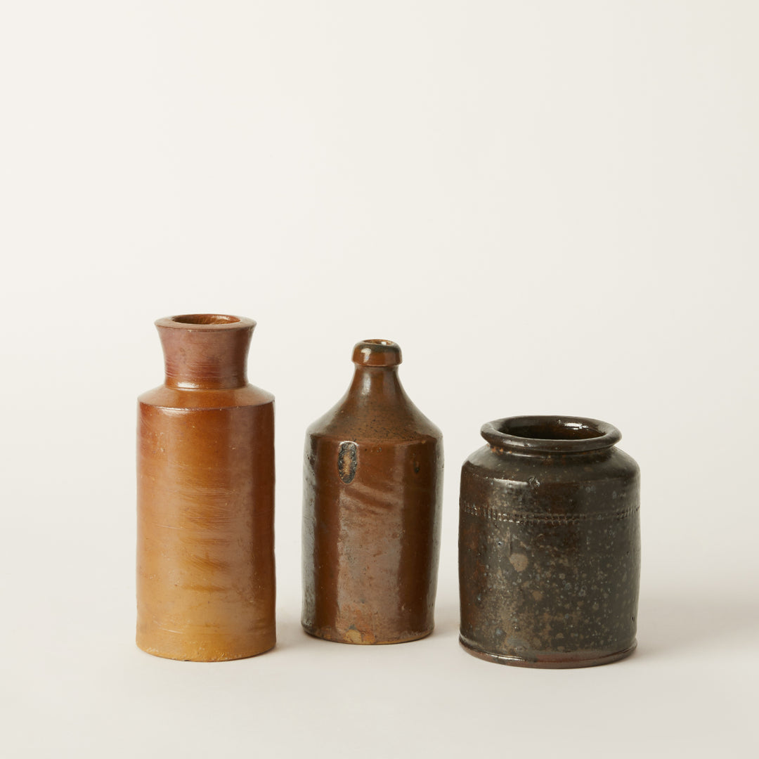 Collection of 3 Brown Antique Stonewear Bottles