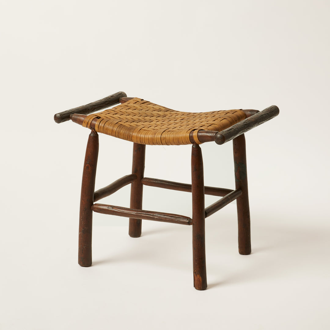 Rustic Old Hickory Wood Stool