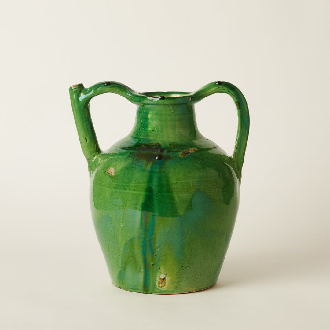 Rare Large Green Glazed Cruche, French