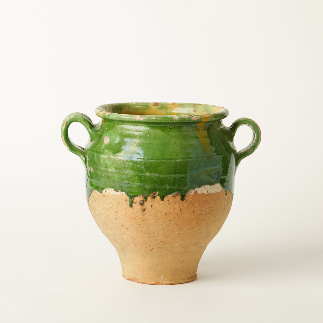 Rare Large Green Glazed Confit Pot, French