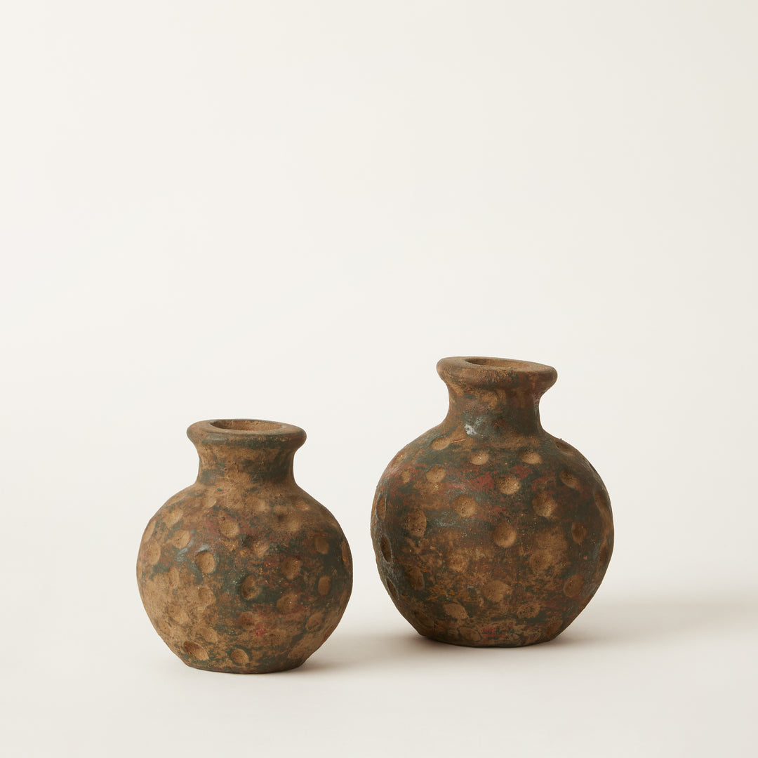 Pair of Primitive "Spotted" Earthenware Vessels