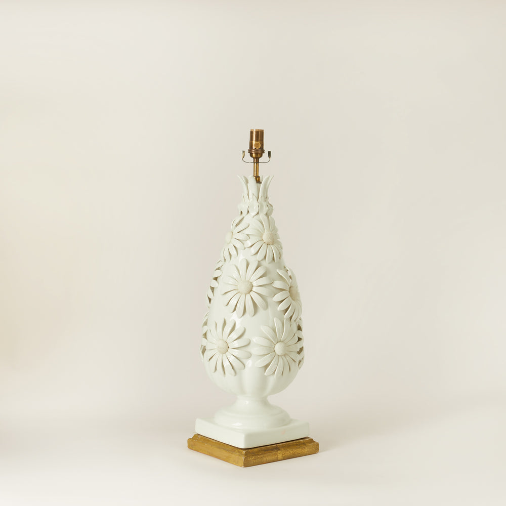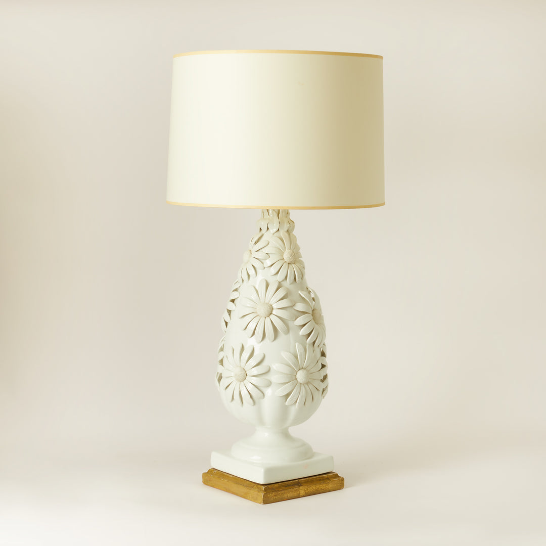 Large Vintage Floral Porcelain Table Lamp, Spanish c. 1960s