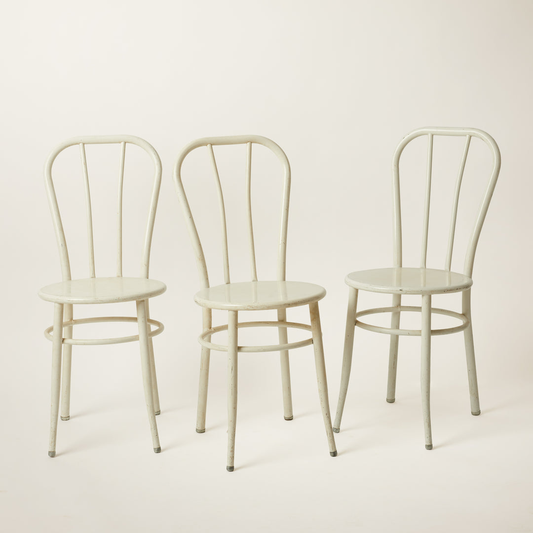 Set of 6 Mid-Century Style Chairs with Woven Aluminum Strapping