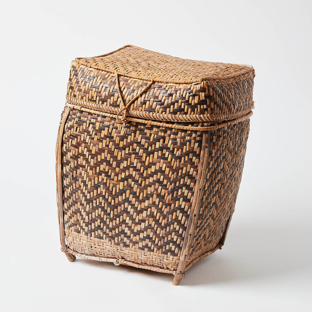 Tall Vintage Indonesian Woven Basket with Lid