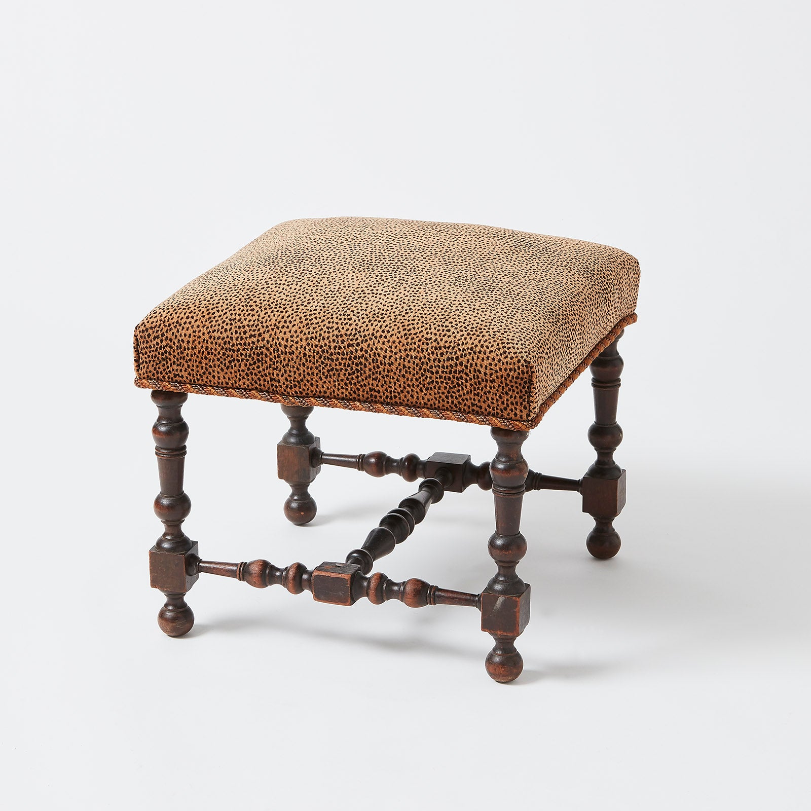 Carved Wooden Ottoman with Velvet Upholstery