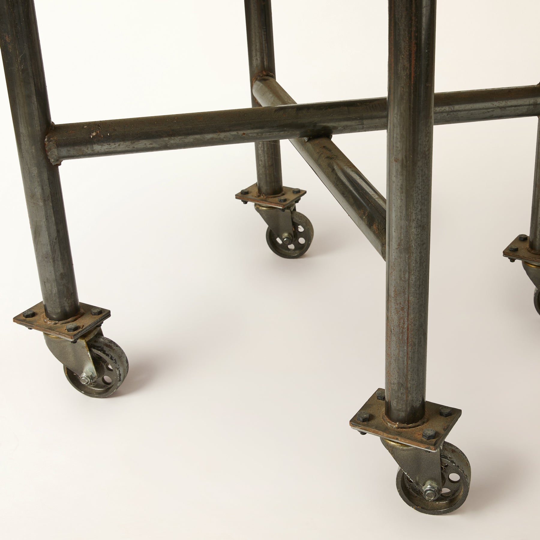 Industrial Style Round Metal Table on Casters