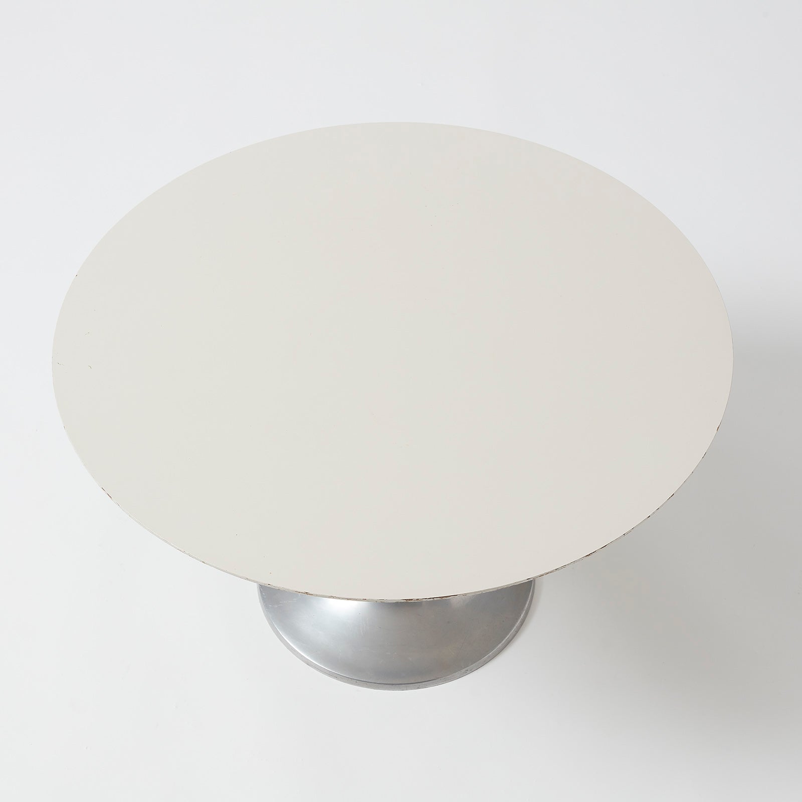 In the style of prolific American designer Eero Saarinen's iconic tulip base table.